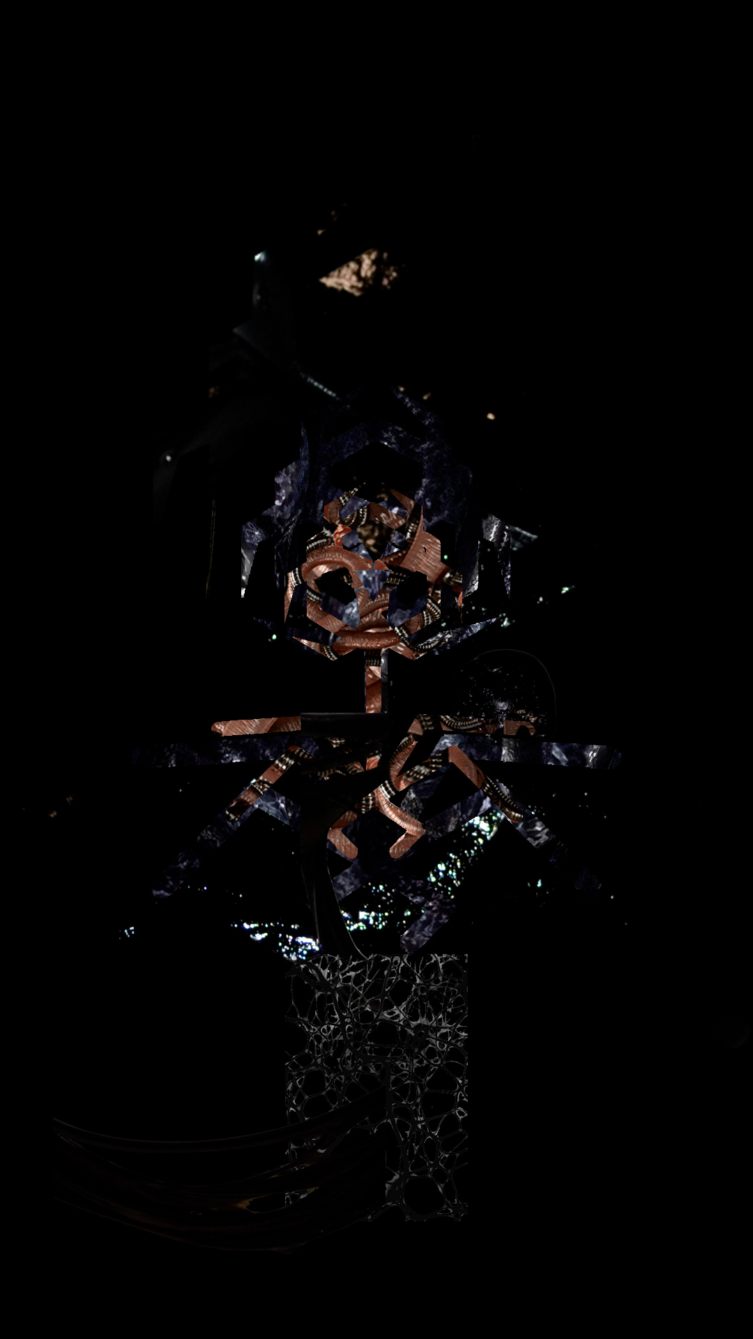 ΞΕΝΙΣΤΕΣ presents a speculative future. It shows a post-human world where the fusion of viruses, biological and artificial lifeforms has taken place and created a new form of existence. The whole work is not visible to the naked human eye, the viewer must use tools such as mobile phone cameras or lights to see the installation in its entirety.